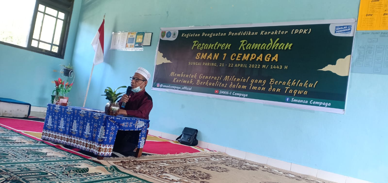 CEMPAGA - Kegiatan Pesantren Ramadhan yang dilaksanakan oleh satuan pendidikan SMAN 1 Cempaga yang terintegrasi dalam Penguatan Pendidikan Karakter (PPK) dilaksanakan secara lancar dan khidmat (Kamis, 21 April 2022).