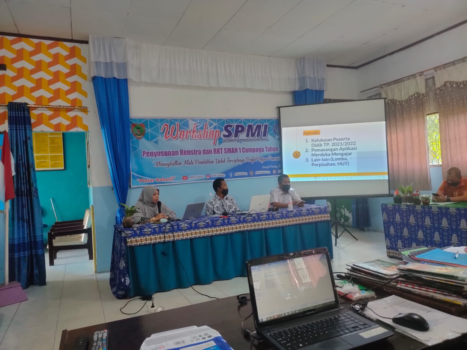 Rapat dinas ini dipimpin oleh bapak Kepala Sekolah, Muhamad Toyep, M.Pd., di dampingi oleh Waka. Kurikulum, Ibu Herliani, S.Pd., dan Waka. Kesiswaan, bapak Suhardi, S.Pd.,MM., serta diikuti oleh bapak/ibu guru SMAN 1 Cempaga dan tata usaha.